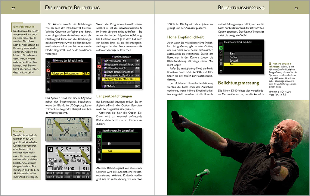 Zahlreiche Exkurse mit zusätzlichen Informationen, Tipps zum Fotoequipment und zur Nikon-Software runden die Darstellung ab.